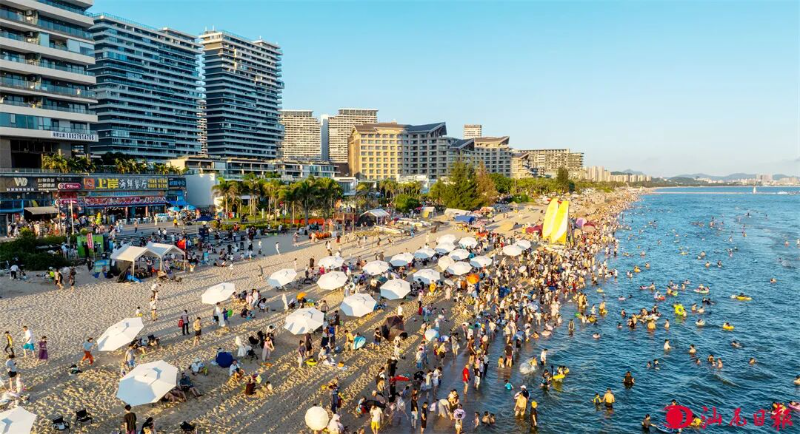 “双节”期间,市区金町湾旅游度假区游人如织。