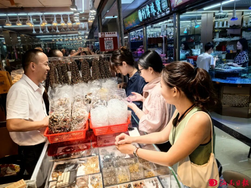 “双节”期间,游客在可塘珠宝交易市场选购珠宝。