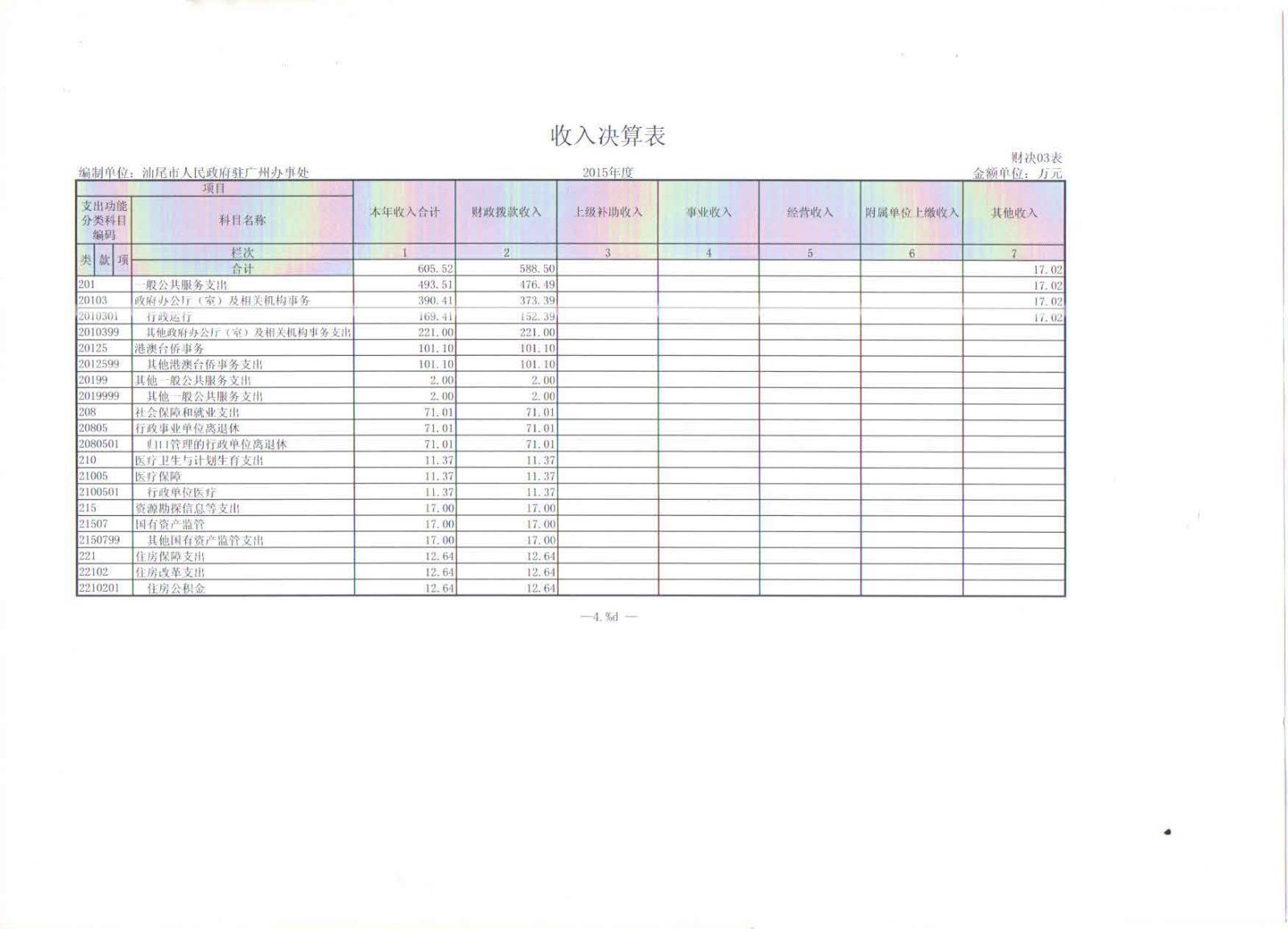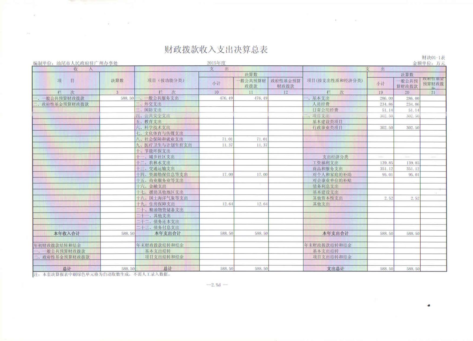 第三部分 2015年度pc蛋蛋(中国)开奖记录查询站 驻广州办事处部门决算情况说明