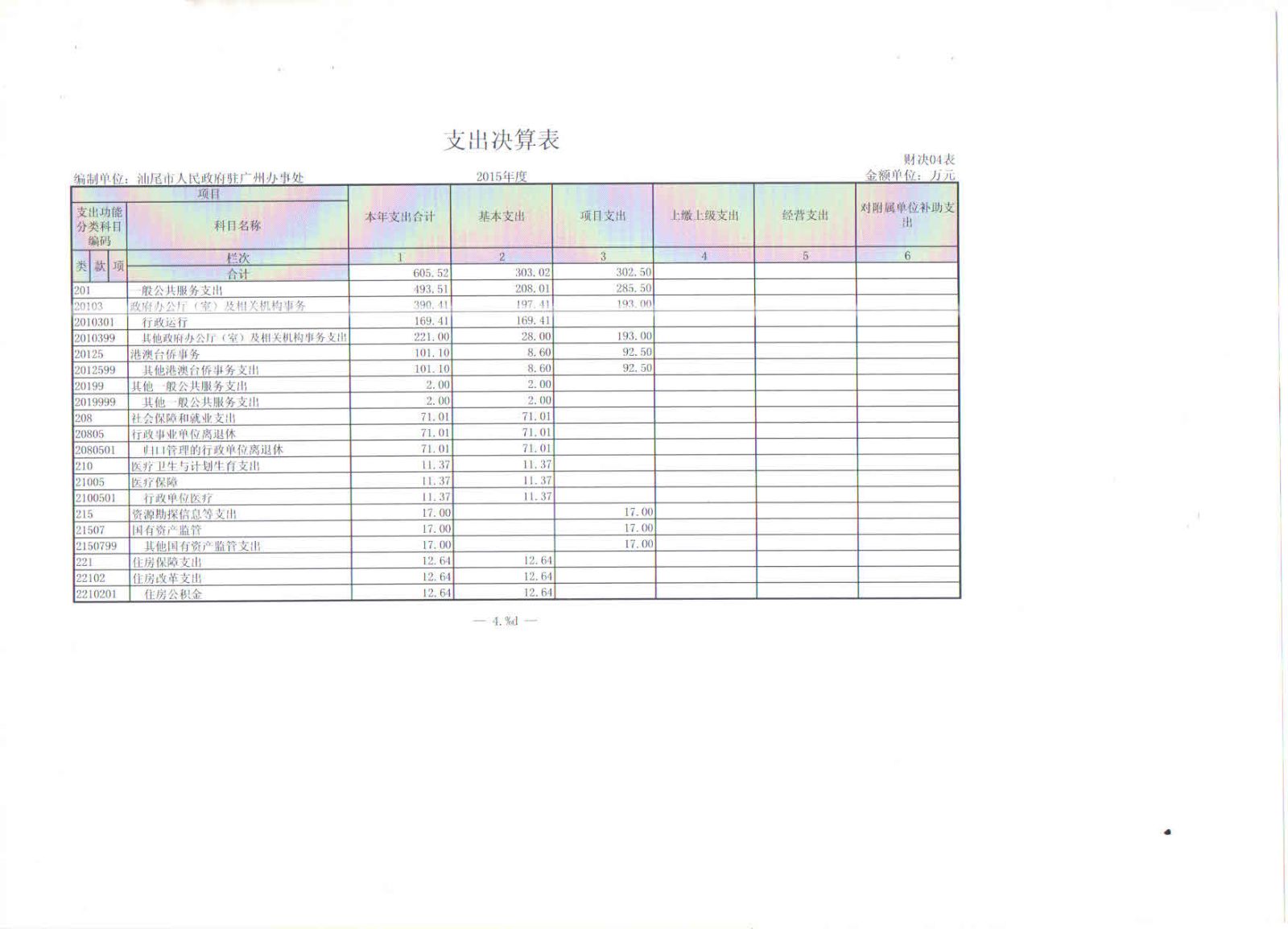 在职实有人数16人,其中:在职16人,退休人员13人 第二部分2015年度pc蛋蛋(中国)开奖记录查询站 驻广州办事处部门决算表
