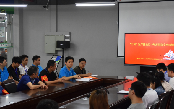 “三调”项目生产基地安全生产常抓不懈。除严格落实日常隐患排查、人手配备防毒面具、生产基地配齐消防设施、加大消防知识宣传等措施外,近日,安居宝生产基地开展2019年度消防培训和演习活动,通过室内集中学习、紧急疏散演练和消防器材使用等方式实打实提高全体工作人员消防安全意识与技能。