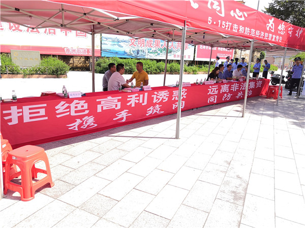 5月12日,市金融局利用公安部门开展打击和防范经济犯罪宣传活动,联合城区金融局积极开展“携手筑网 同防共治”防范非法集资宣传活动。