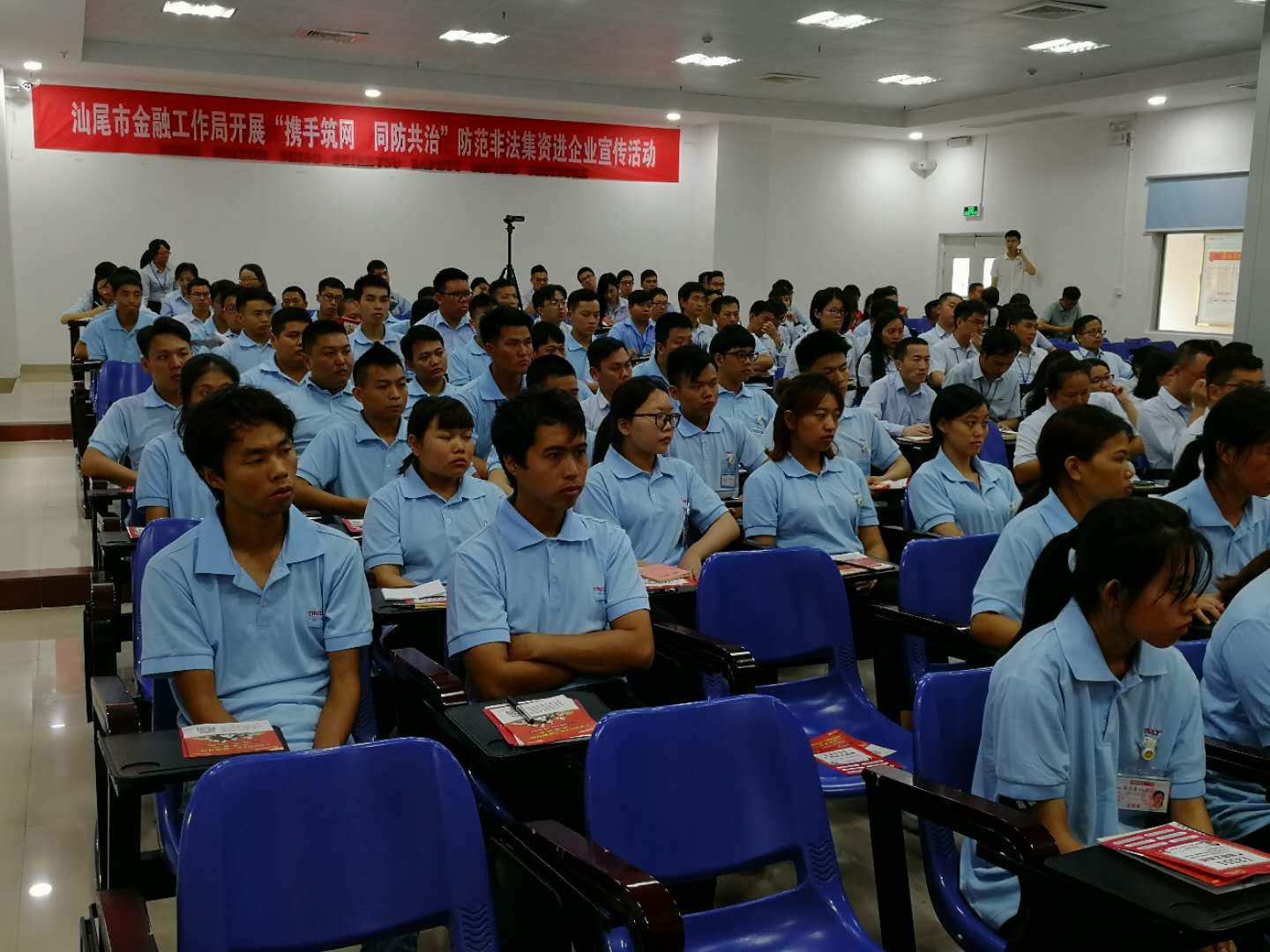 为深入开展防范非法集资和扫黑除恶宣传活动,5月23日,pc蛋蛋(中国)开奖记录查询站 金融工作局到信利集团公司培训学院开展“携手筑网▪ 同防共治”防范非法集资暨扫黑除恶进企业宣传活动。