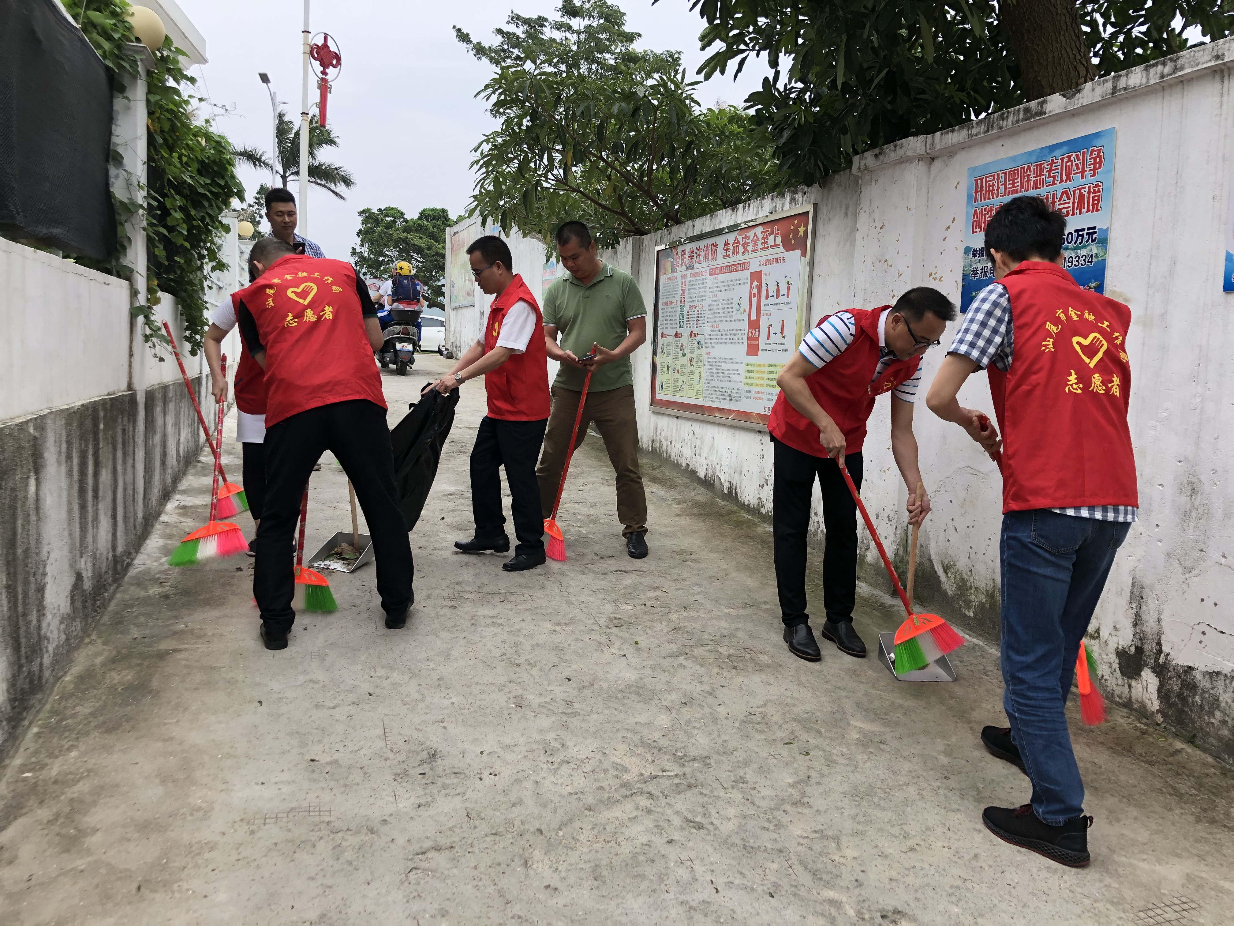 下午3时许,金融局志愿服务队一行人根据门前三包有关要求,完成办公大楼周边环境卫生清洁工作后,马不停蹄地赶往市城区红卫渔业村开展环境卫生清洁行动,认真清扫路面垃圾,清运积存垃圾、清理绿化带、消除卫生死角,割除路边杂草等。经过一个多小时的共同努力,共清理出垃圾杂物等9车该村环境卫生状况得到明显改善,整个面貌焕然一新;同时,志愿者向沿路商户、居民开展环境卫生宣传教育,号召他们自觉保持公共环境干净、整洁,以实际行动支持pc蛋蛋(中国)开奖记录查询站创卫工作,取得了积极成效。