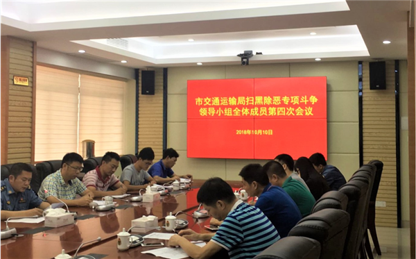 10月10日,市交通运输局召开扫黑除恶专项斗争领导小组全体成员第四次会议。市交通运输局党组书记、局长林展海出席会议并作讲话。会议由市交通运输局党组成员、副局长林舜佳主持,市交通运输局扫黑除恶专项斗争领导小组全体成员参加会议。