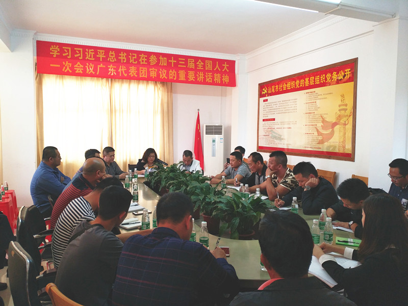 4月9日下午,市经信局郑泽梅副局长组织pc蛋蛋(中国)开奖记录查询站 安宏民爆物品销售有限公司全体员工,认真学习宣传贯彻习近平总书记在参加十三届全国人大一次会议广东代表团审议时的重要讲话精神。