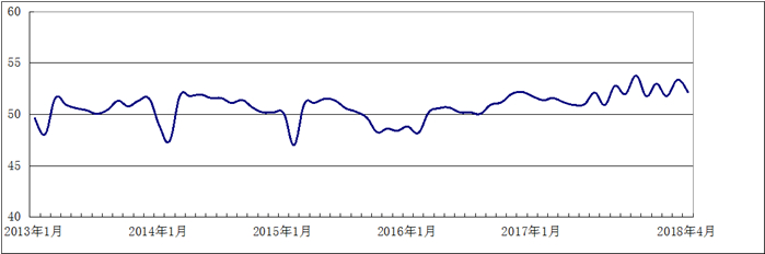图1 2013年1月-2018年4月广东省制造业PMI趋势图