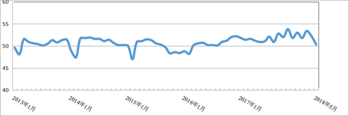 图1 2013年1月-2018年5月广东省制造业PMI趋势图