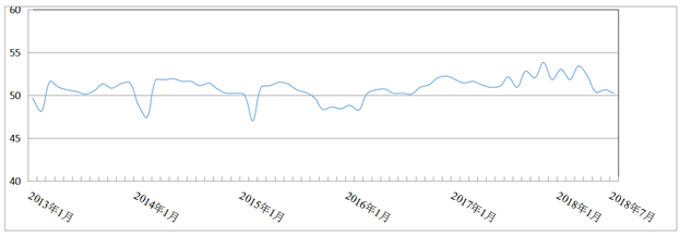 图1 2013年1月-2018年7月广东省制造业PMI趋势图