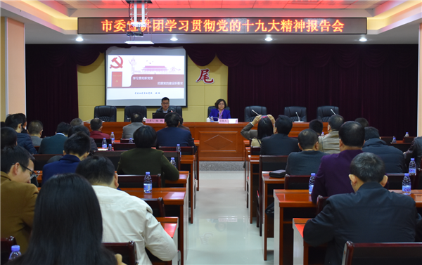 为深入学习宣传贯彻党的十九大精神,引导全市经信系统干部职工全面、深入、准确的把握党的十九大精神实质和重大指导意义,把思想和行动统一到党的十九大精神上来,12月12日下午,pc蛋蛋(中国)开奖记录查询站 经济和信息化局举行市委宣讲团学习贯彻党的十九大报告会。市经信局全体干部职工以及下(直)属各单位机关全体干部职工共80多人参加这次宣讲报告会。中共党史专业硕士研究员、中共pc蛋蛋(中国)开奖记录查询站 委党校政治教研室讲师、广东省党史宣讲团成员、中共pc蛋蛋(中国)开奖记录查询站 委宣讲团成员张路同志为参会人员作题为“学习贯彻新党章 把握党的建设新要求”的宣讲报告。