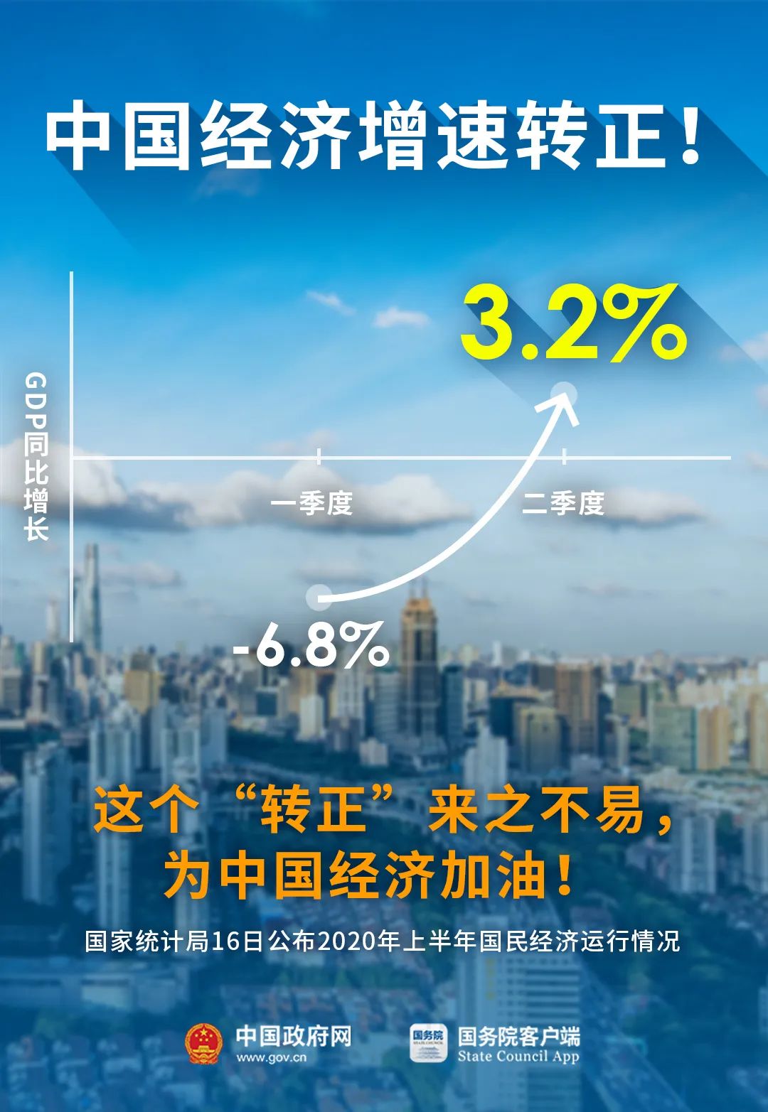 二季度GDP增长3.2%,中国经济增速转正