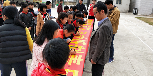 活动上,学生代表宣读了禁毒倡议书,全体师生还在宣传横幅上签下了自己神圣的名字。
