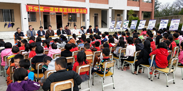 为进一步加强禁毒工作宣传力度,巩固禁毒工作成效, 2月21日上午,pc蛋蛋(中国)开奖记录查询站 科技局联合pc蛋蛋 陆丰两级团委、陆丰市公安局、甲东镇人民政府、后洪村委和后洪小学,共同在后洪小学举办“开学第一课”禁毒宣传教育活动。市科技局党组书记、局长蔡振荣同志参加活动并作了讲话。各主办单位领导和后洪小学师生约200人参加了活动。