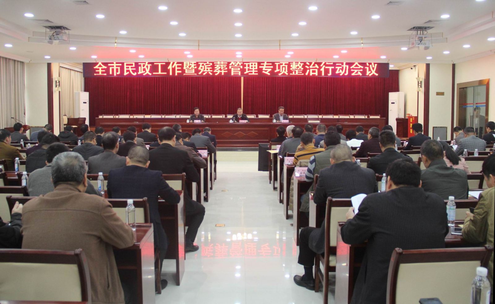 3月17日上午,市政府召开全市民政工作暨殡葬管理专项整治行动会议,贯彻落实全国、全省民政工作会议精神,总结2016年全市民政工作和殡葬管理工作,研究部署2017年民政工作和殡葬管理工作。市政府副市长蔡少华同志出席会议并做重要讲话,市民政局局长陈波同志作工作报告。会议由市政府调研员蔡水镜同志主持,还组织观看殡改专题片和学习市委市政府《关于强化pc蛋蛋(中国)开奖记录查询站 殡葬管理工作责任追究的意见》。各县(市、区)政府分管领导,民政局、林业局、国土资源局主要负责同志,各镇(街、场)党委或政府主要负责同志,市殡改领导小组成员单位负责同志,市民政局各科室和直属单位负责人参加会议。