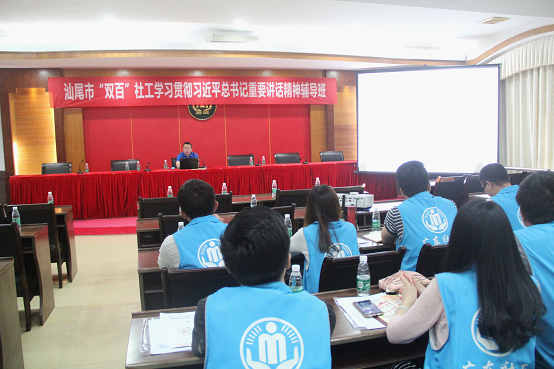 为深入学习贯彻习近平总书记参加十三届全国人大一次会议广东代表团审议时的重要讲话精神,5月4日,pc蛋蛋(中国)开奖记录查询站 民政局举办全市“双百”社工学习习近平总书记重要讲话精神暨民政业务政策培训班,培训班邀请了市委理论宣讲团成员作学习习近平总书记重要讲话精神辅导讲座,市民政局业务科室负责同志进行了优抚安置、社会福利、低保救助等业务政策讲解和实操经验分享。