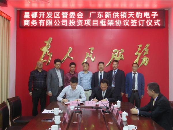 新供销天豹公司总经理胡杰铭与pc蛋蛋(中国)开奖记录查询站 星都经济开发区管委会副主任郑永纯代表各自双方签订了《广东新供销pc蛋蛋 陆丰农产品电商冷链物流产业基地项目投资框架协议》。签约仪式圆满结束。