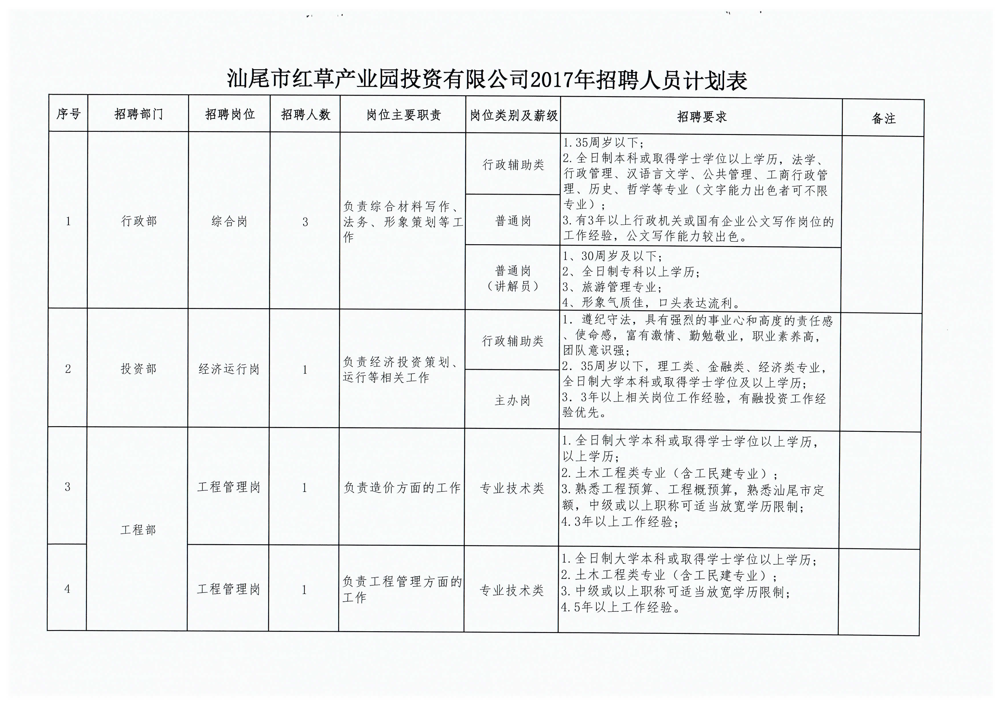附件:pc蛋蛋(中国)开奖记录查询站 红草产业园投资有限公司2017年招聘人员计划表(2017-8-3).xlsx