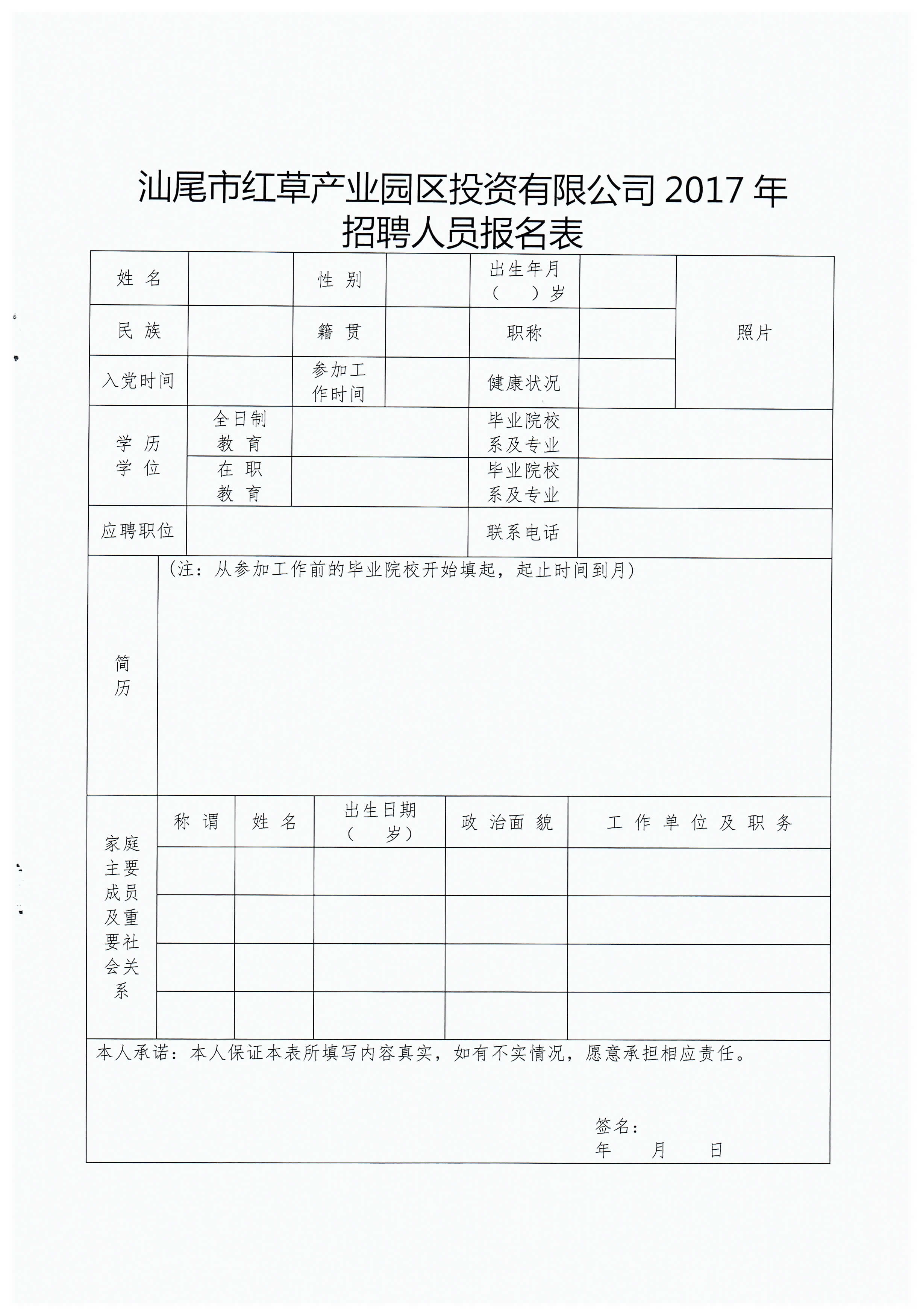附件:pc蛋蛋(中国)开奖记录查询站 红草产业园区投资有限公司2017年招聘人员报名表.docx