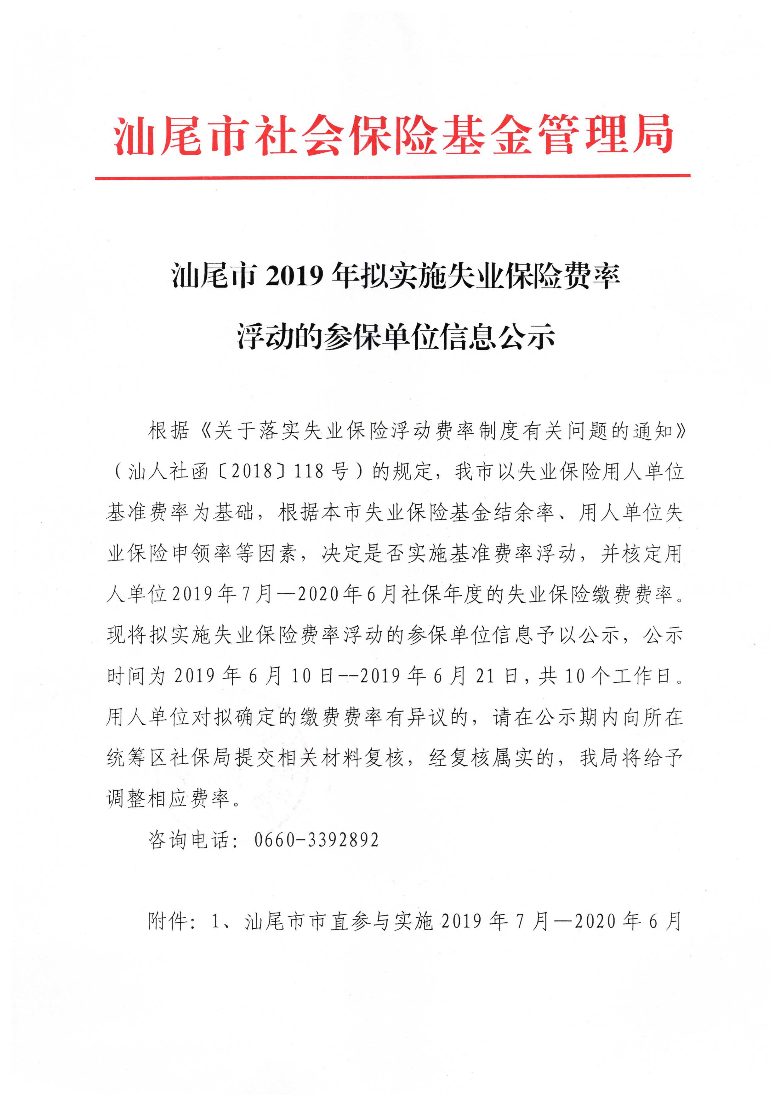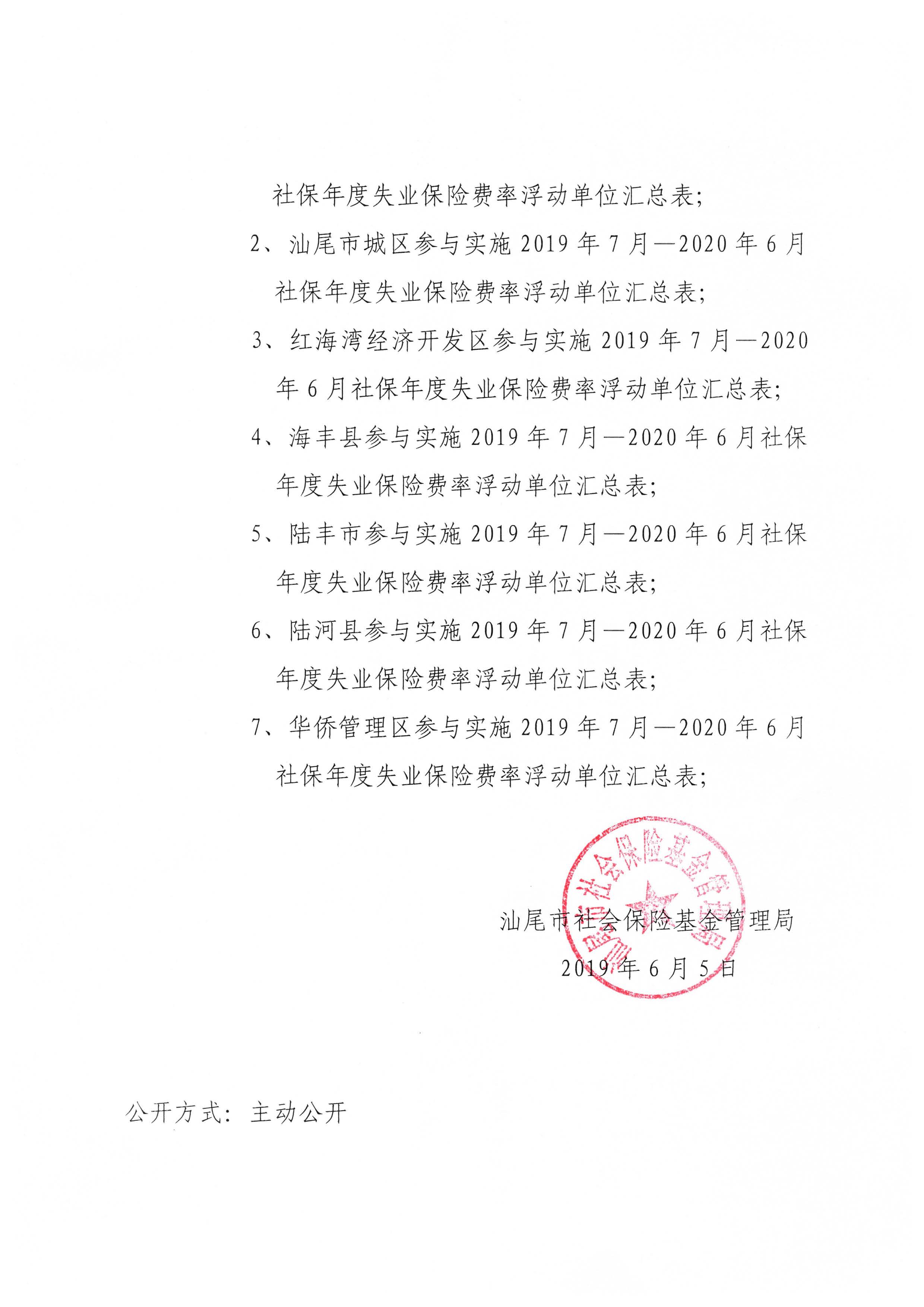 附件3:红海湾经济开发区参与实施2019年7月-2020年6月社保年度失业保险费率浮动单位汇总表