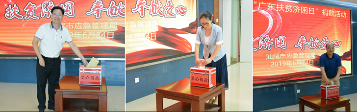 6月24日下午,市应急管理局举行以“决战脱贫攻坚,助力乡村振兴”为主题的“广东扶贫济困日”献爱心捐赠活动。全体干部职工纷纷响应,踊跃进行爱心捐款。