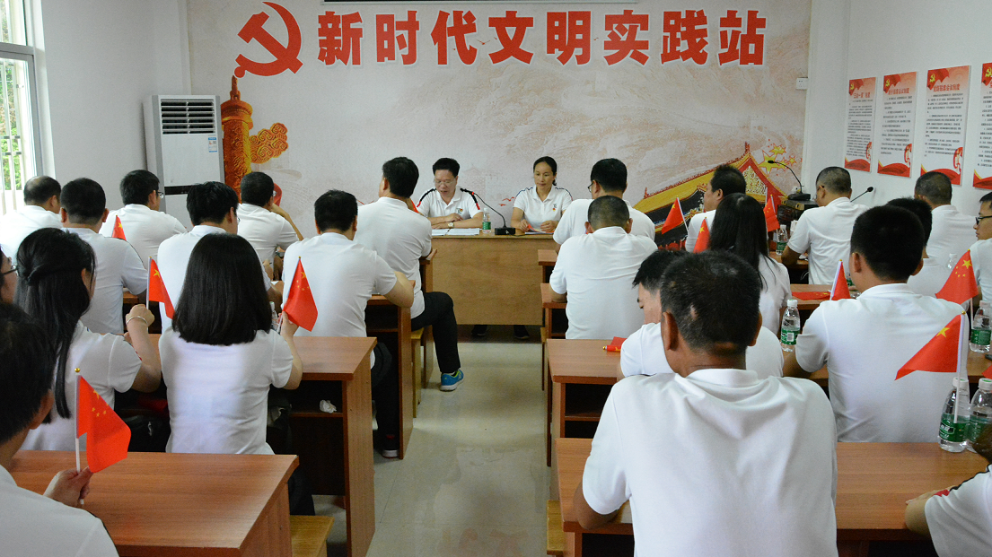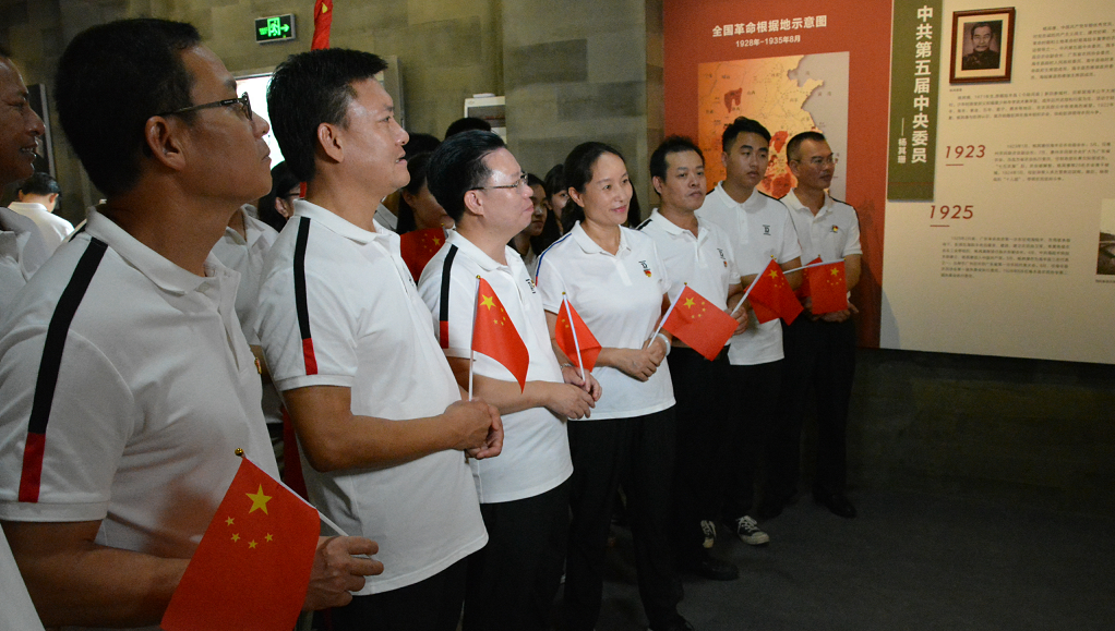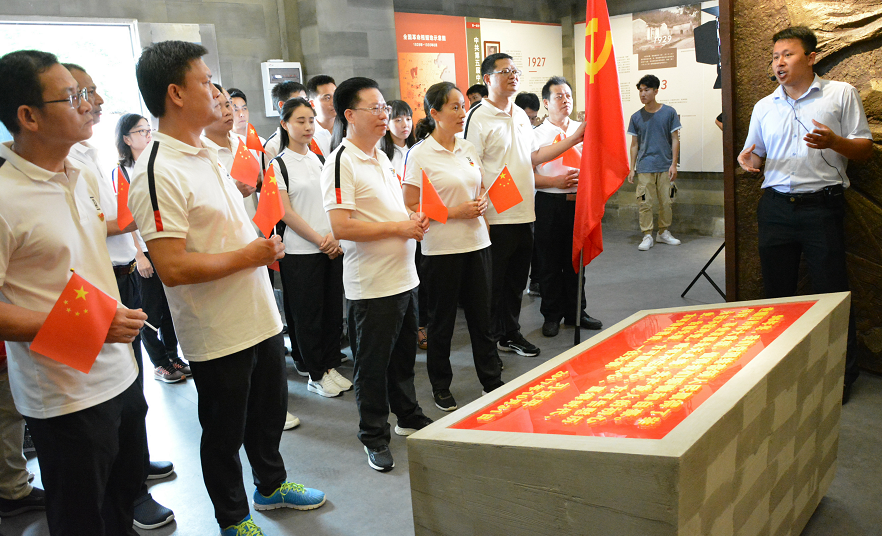在革命英雄浮雕前,全体党员面对鲜红的党旗,庄严地的进行了入党誓词宣誓。