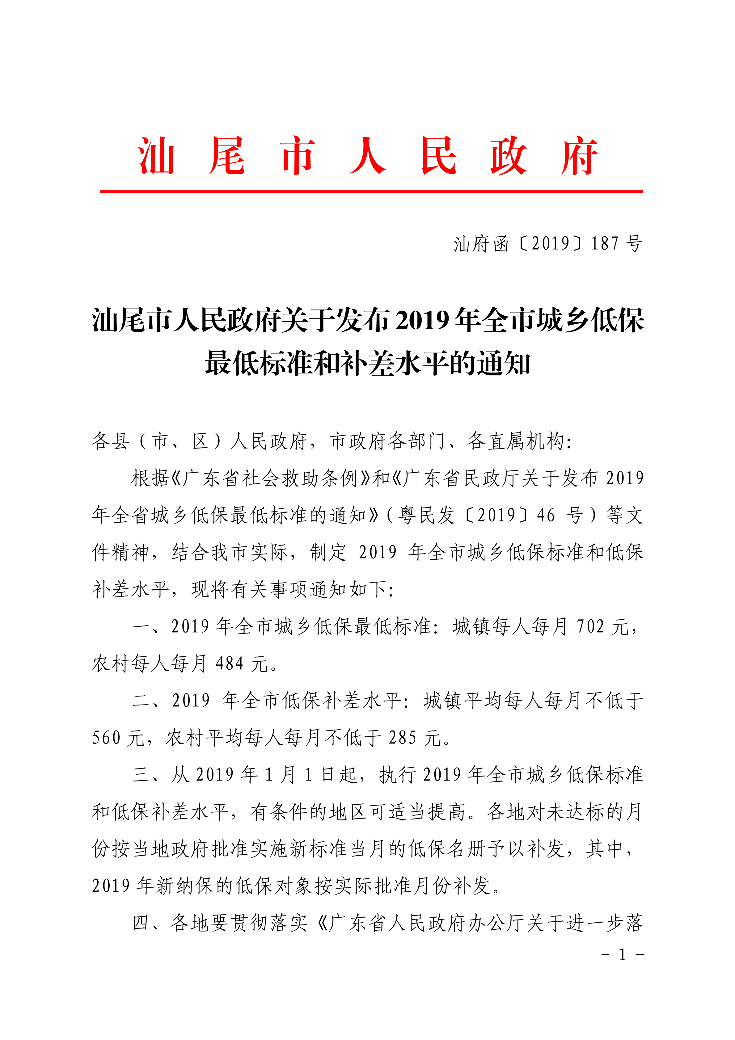 关于印发2019年全市城乡低保最低标准和补差水平的通知》的政策解读