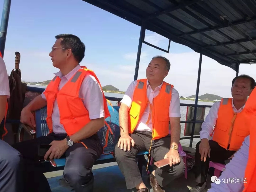 蔡少华一行在海丰县东溪水闸乘船巡查至东溪河到螺河的入河处,实地巡查东溪河水质、水环境,详细了解东溪河岸边生活、建筑垃圾清理、养鸭场拆除等情况,他提出要认真排查污染源,落实整改措施,及时改善水环境。