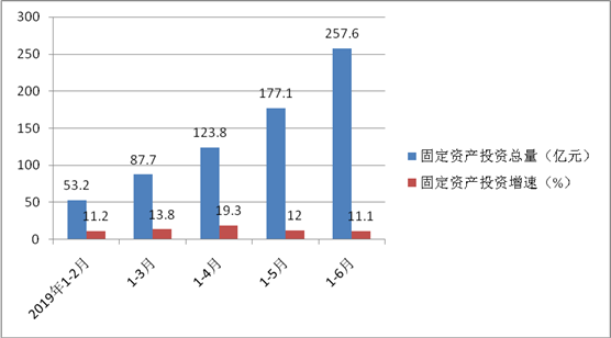 (一)固定资产投资增速稳中趋缓。据最新统计数据显示:上半年,全市完成固定资产投资257.6亿元,同比增长11.1%,增幅比一季度回落2.7个百分点,比全省平均水平高出0.6个百分点。其中,项目投资完成195.6亿元,同比增长0.6%,比全省平均水平高出0.4个百分点;房地产开发投资62.0亿元,同比增长63.0%,比全省平均水平高出50.6个百分点(见下表)。