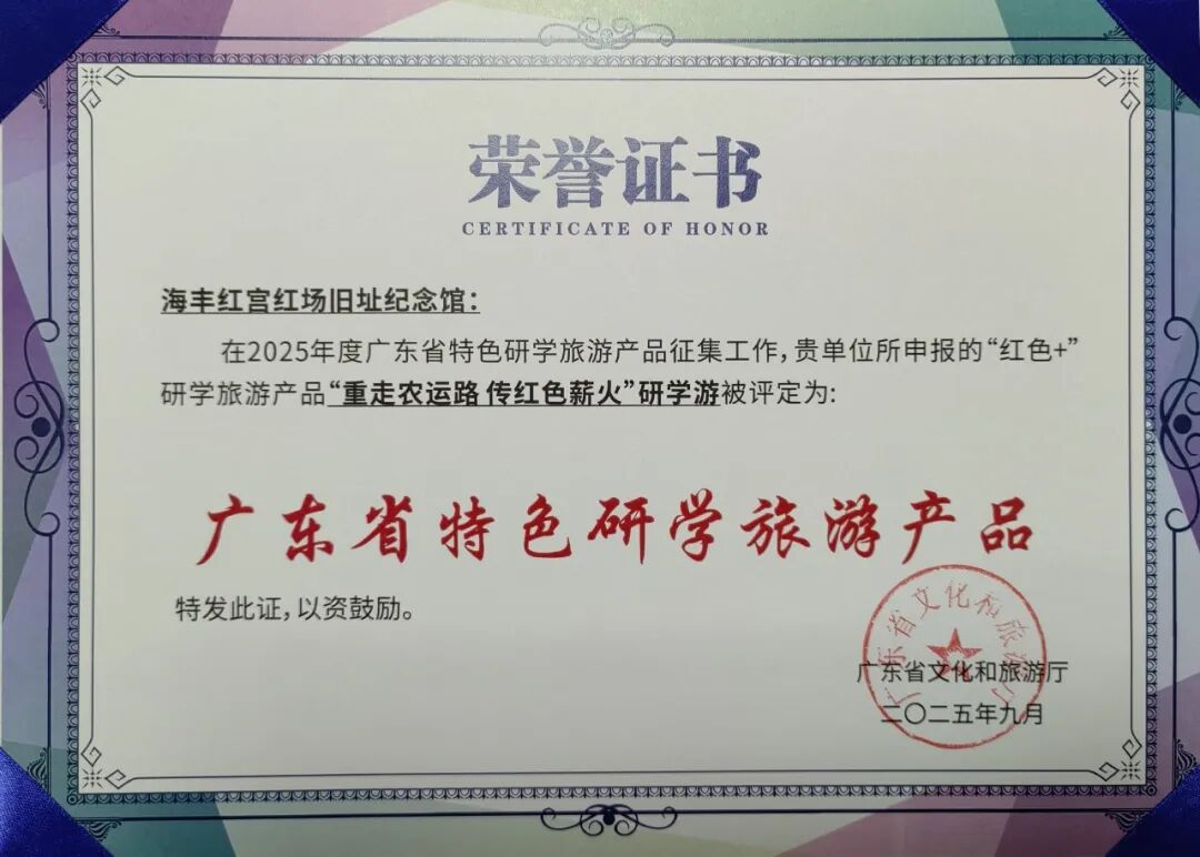 9月13日,在2025广东国际旅游产业博览会举办期间,广东省研学旅游发展交流会暨广东省特色研学旅游产品推介会在广交会展馆举行,会上正式推出2025年度广东省特色研学旅游产品,pc蛋蛋(中国)开奖记录查询站 海丰红宫红场旧址纪念馆申报的“红色+”研学旅游产品《“重走农运路 传红色薪火”研学游》成功入选。