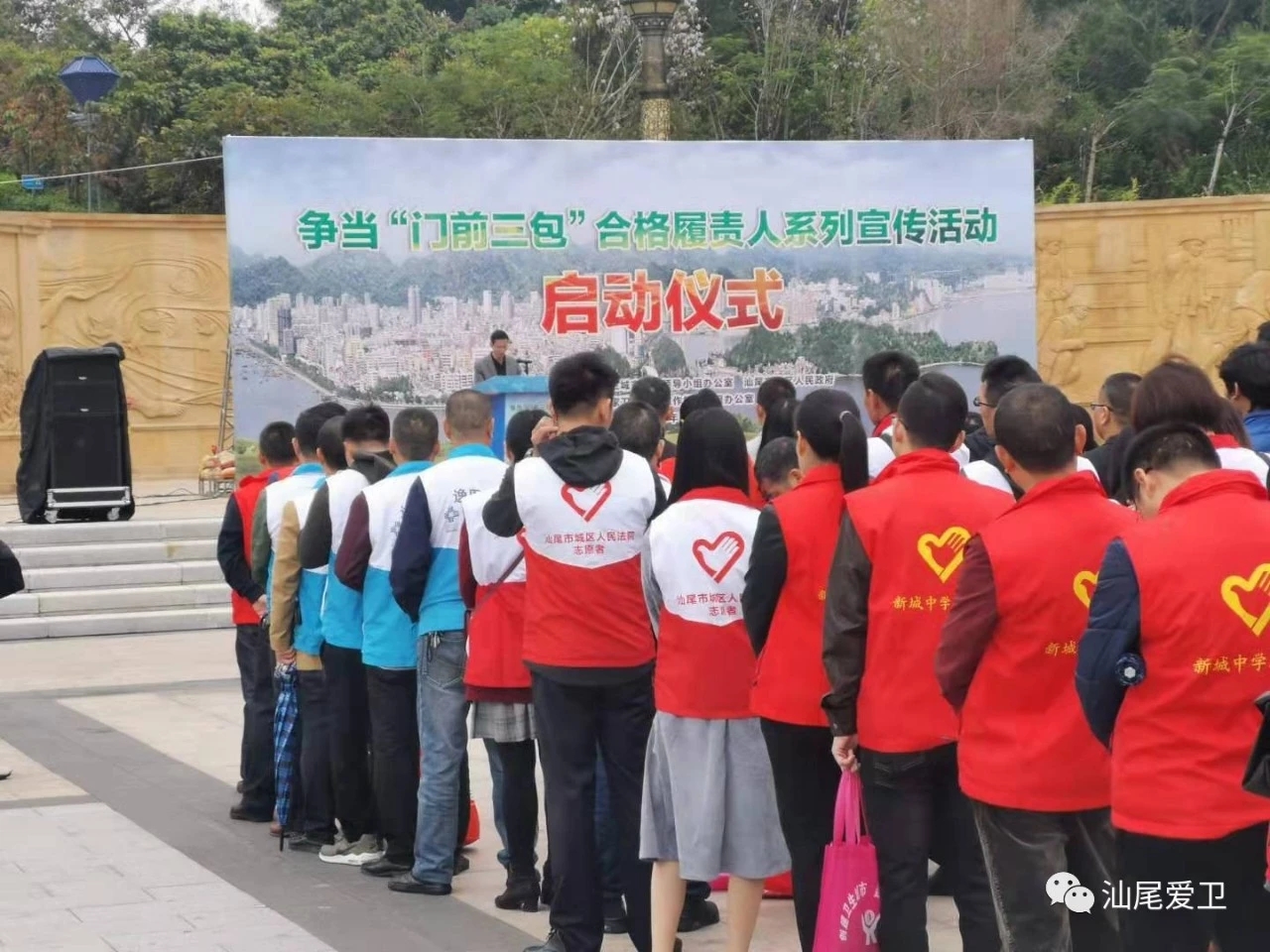 3月6日上午,由市创卫办和市城区政府联合主办的“争当‘门前三包’合格履责人”系列宣传活动启动仪式在市区玉台山慈云公园广场举行。号召全社会参与到当前国家卫生城市创建活动中来,争当“门前三包”合格履责人,扩大市容环境卫生“门前三包”宣传的覆盖面,切实改善市区环境面貌,打造整洁、靓丽、文明的宜居宜业宜游宜憩沿海城市,努力把pc蛋蛋 建设成为沿海经济带上的靓丽明珠。
