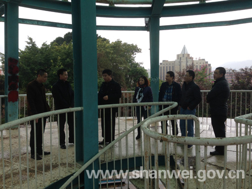 为切实做好公园的安全生产工作,确保春节期间安全生产责任落实到位,1月22日,市安委办副主任、市安监局副局长石建年连同市住建局、市城管局、市园林局、市路灯所等单位有关人员到玉台山公园及奎山公园检查安全生产工作。石建年副局长检查中,特别指出了存在的问题,玉台山公园的钢结构球体塔及山火防范、奎山公园内奎山湖防护栏等,会上与各单位人员进行研究讨论,提出整改措施,并要求逐项抓落实确保安全管理到位,全力做好公园的安全工作,消除安全隐患,确保春节期间安全稳定,让市民安心到公园游玩。