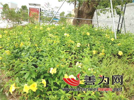 据市园林局专业人士介绍,软枝黄蝉别名黄莺,夹竹桃科黄蝉属,常绿灌木类木本植物,原产地为巴西。多年生常绿灌木,植株高2米,枝条柔软、披散,茎干绿色至深褐色。叶近无柄,阔披针形。该物种为中国植物图谱数据库收录的有毒植物,其毒性为植株乳汁、树皮和种子有毒,人畜食后引起腹痛、腹泻。我国引入栽培。可用于庭园美化、围篱美化、花棚、花廊、花架、绿篱等攀爬栽培。软枝黄蝉可扦插繁殖。春、秋选取1~2年生充实枝条,剪成15-20cm长、带有3~4个节的插穗插于素砂土中,放在光线明亮处,经常保持湿润,在20℃气温条件下约20天生根。苗高10cm时,可摘心移植或上盆。注意将插条从母株剪下后,必须等切口的乳汁完全干燥,始可插入砂床,否则成活率不高。