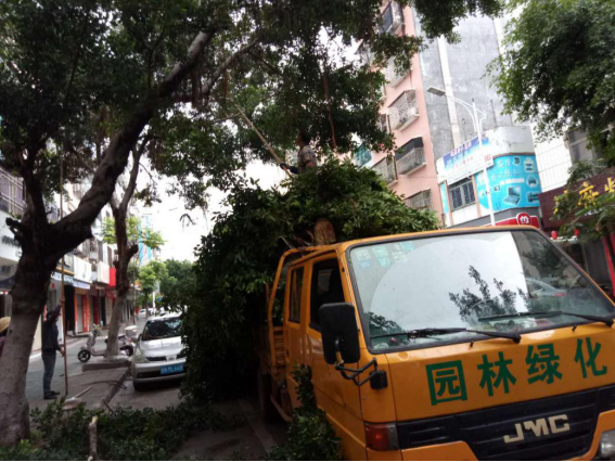 市区各道路进行绿化修剪