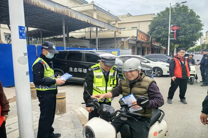 活动中,宣传人员在南联路口、新时代文明实践站、万家好等重要路口、路段设立劝导点,通过对未按规定佩戴安全头盔的摩托车、电动自行车骑乘人员进行拦截,结合典型事故案例,面对面地分析讲解事故成因,让群众深入了解头盔在关键时刻对生命安全的重要保护作用。同时,民辅警还通过分发宣传材料、发放安全头盔、示范安全头盔的正确佩戴方法等方式,引导大家树立“戴好头盔、安全出行”的安全防护意识,做到自觉预防事故,克服麻痹、侥幸心理,共同营造安全、文明、和谐的道路交通环境。