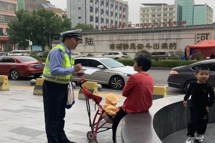 公安交管陆河大队组织宣教警力走进客家文化广场开展“九九重阳节 交警送安全”交通安全主题宣传活动,给老年人送去常见实用的交通安全常识。