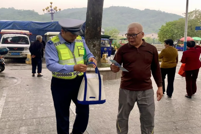 活动中,宣教人员结合老年群体出行习惯特点,围绕步行安全、骑行规范、乘车防护等方面普及交通安全知识。同时,结合典型事故案例,用通俗易懂的本地客家语言分析违法行为危害性与严重后果,提醒大家过马路要“一停二看三通过”、不随意横穿马路、驾乘电动车规范佩戴安全头盔及不闯红灯不逆行,要注意避让车辆“视线盲区”,让老人们深刻认识安全出行的重要性,引导大家摈弃交通陋习。