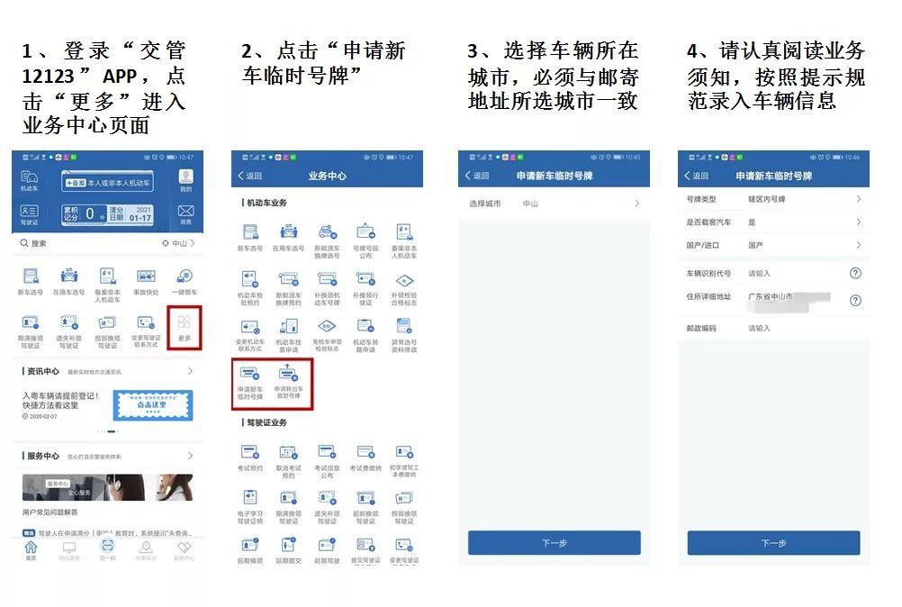 以下3种情形,车主可登录“交管12123”手机APP向车辆所在地公安交管部门申领临时行驶车号牌,实行临时号牌网上申请、网上受理、后台审核、邮寄送达: