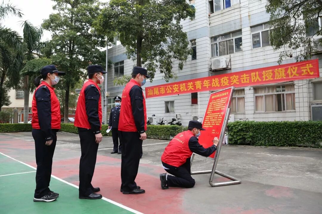 公安局党委疫情防控工作部署,市公安局团委在全市公安系统组建了7支青年战疫突击队共114人。全体突击队员在授旗仪式上进行集中宣誓并庄重签名承诺,随后这7支突击队将奔赴疫情防控工作第一线,为坚决打赢全市新冠肺炎疫情防控阻击战贡献青春力量。 | |
