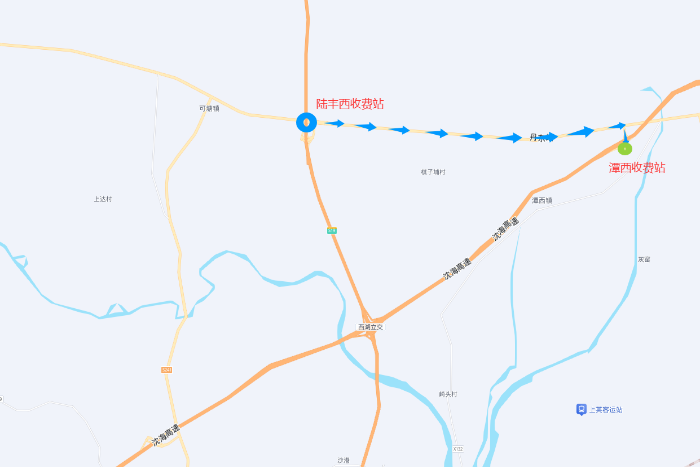 陆丰西收费站→右转驶入G228国道(行驶约9公里)→从潭西站驶入沈海高速。