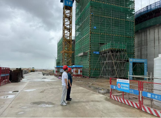 陈桂民一行深入施工现场,实地察看施工进度及防台风工作情况,督促业主单位做好防御台风“韦帕”各项工作,现场了解到,项目已严格按照应急响应要求,全面停止高空作业,暂停塔吊、施工电梯等大型机械设备运行,所有施工人员均已安全撤离,同时严格落实24小时值班制度,确保突发情况及时响应、有效处置。