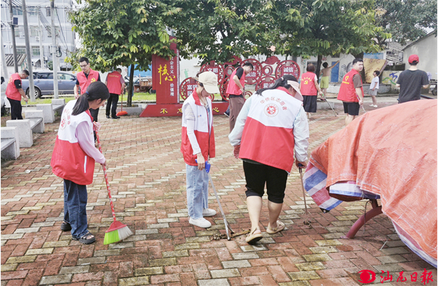 侨区干群协力开展卫生清洁活动。
