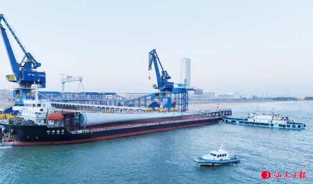 2025年11月29日,载有126米长风机叶片的“和海通X”甲板货船,从陆丰海洋工程基地码头平稳离泊,奔赴远海风电建设现场。