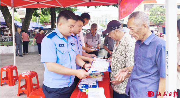 工作人员向群众宣传禁毒、反诈知识。