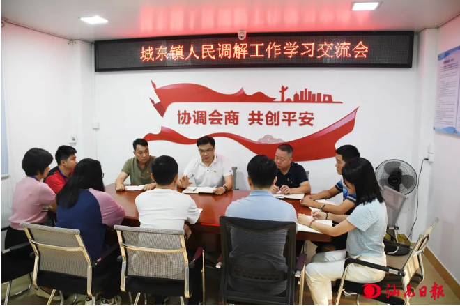 近年来,海丰县城东镇人民调解委员会紧扣镇党政工作主线,在海丰县司法局的指导下,不断吸纳公道正派、热心调解工作并具有一定政策水平、法律知识和会做群众工作的人员加入人民调解员队伍,逐步提升人民调解员规范化水平;不断完善人民调解员培训制度,健全岗前培训、跟班实训、年度培训、继续教育培训和专项技能培训等培训模块,以理论与实际相结合的形式,提升人民调解员专业化水平;坚持和发展新时代“枫桥经验”,充分发挥调解维护社会和谐稳定“第一道防线”作用,为维护社会和谐稳定作出了积极贡献。