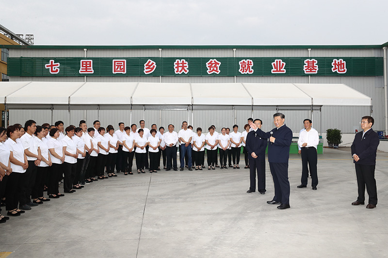 5月14日上午,中共中央总书记、国家主席、中央军委主席习近平在河南省南阳市主持召开推进南水北调后续工程高质量发展座谈会并发表重要讲话。这是座谈会前,习近平于12日在南阳药益宝艾草制品有限公司考察。新华社记者 鞠鹏 摄
