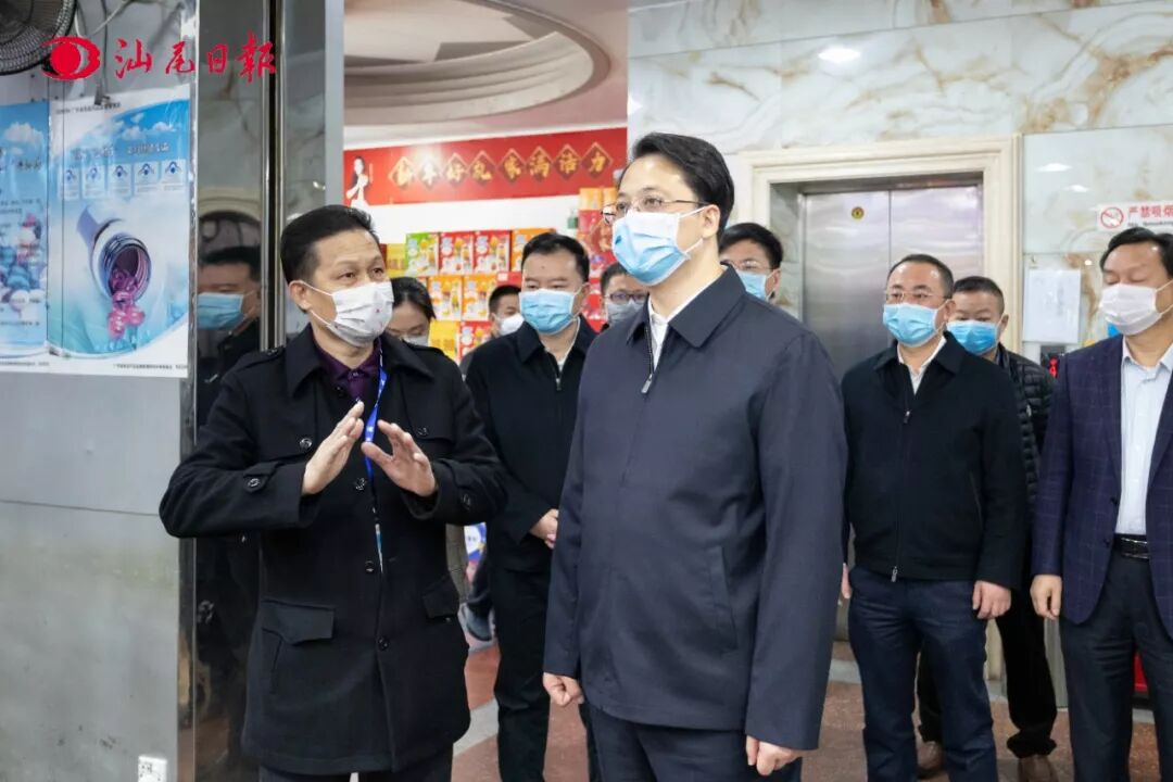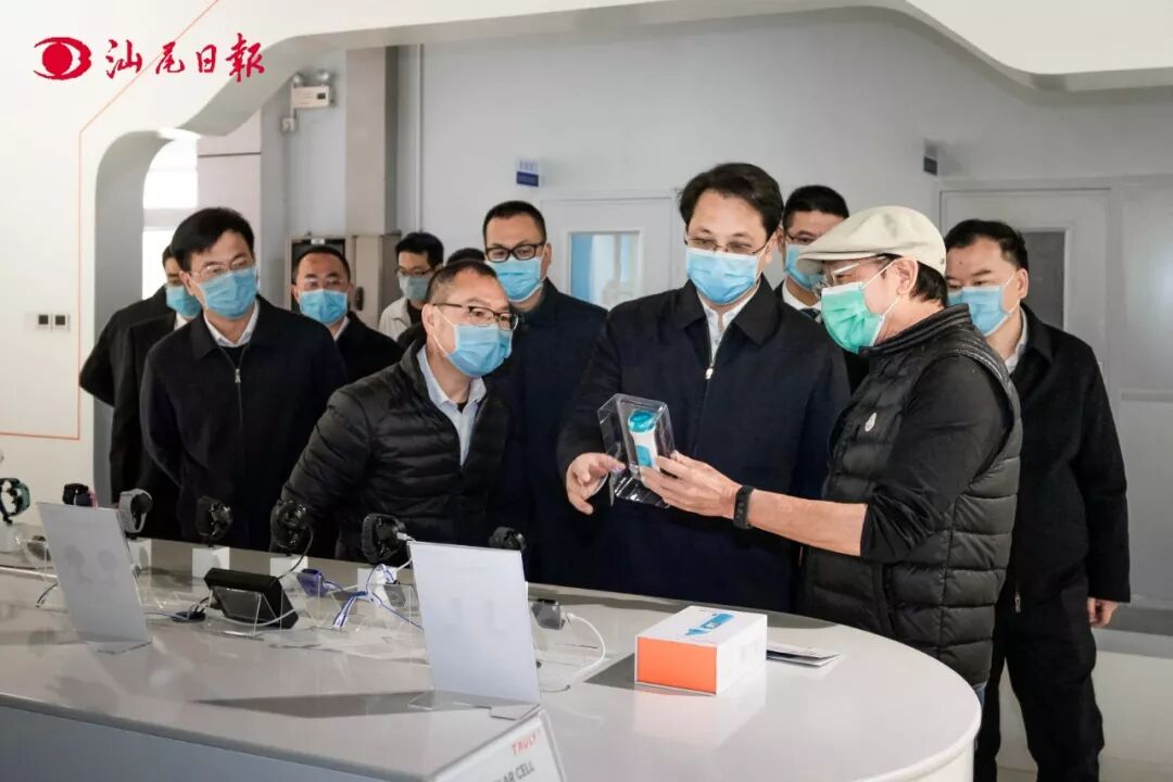 图为市委书记张晓强在疫情防控物资生产企业——信利集团检查复产情况。