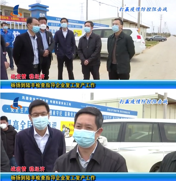 19日,市人大常委会党组书记、代理主任杨扬到陆丰市检查指导企业复工复产工作,要求要落实好企业主体责任和监管责任,严格落实复工复产疫情防控措施;要强化疫情期间复工复产的组织领导,加强企业疫情防控机制、员工排查等疫情防控工作;要在确保防控安全的情况下,组织好生产经营,做好复工复产保障工作。