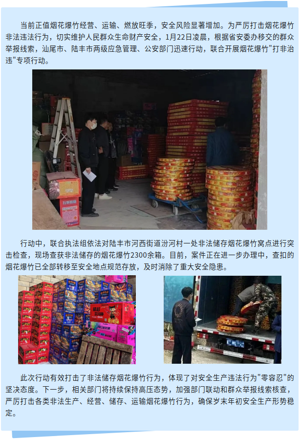 重拳出击 陆丰市成功端掉一处非法储存烟花爆竹窝点