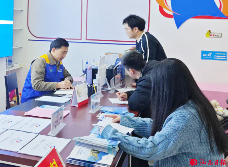 在城区就业驿站香洲中区站,工作人员指导高校毕业生进行就业信息登记,解答相关政策。