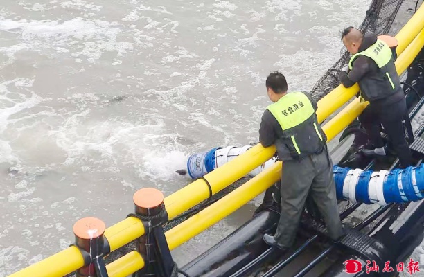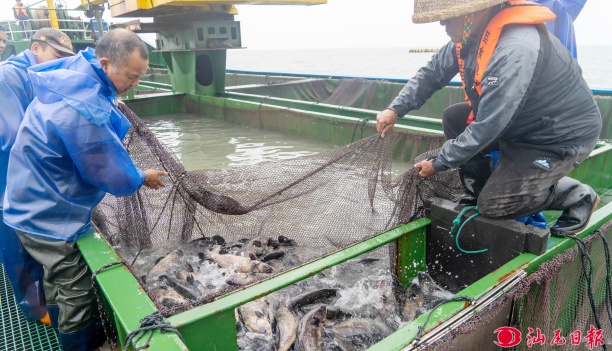 鮸鱼鱼苗逐步投入网箱。 pc蛋蛋 日报记者 陈茂辛 摄